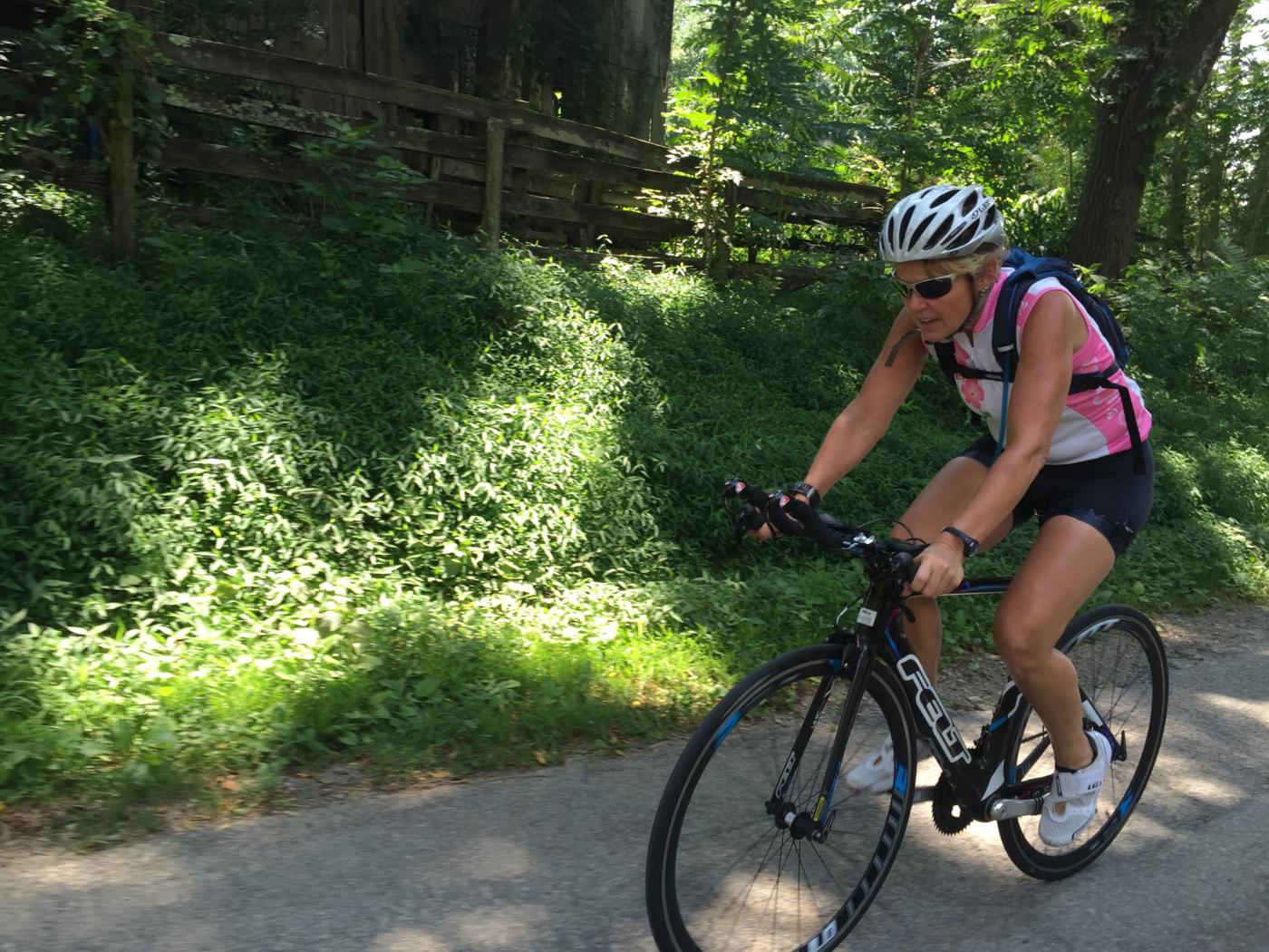 Our group had a wide variety of abilities among both male and female riders. Not only were we facing two mountains, but on this July day the heat and humidity were also worrisome. We took it easy on Bent mountain, knowing it was only the first of the day’s two major climbs. Two of the riders opted for CamelBaks and I wish I had. It was going to be difficult to stay hydrated with just my two water bottles.