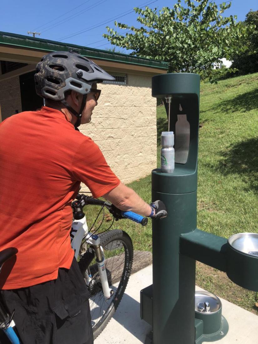 If you only want water, you might as well hang on for two more miles and you’ll arrive at Intervale, the southern end of the trail. There is a large parking lot there, along with clean restrooms and shaded picnic areas. There is a drinking fountain that includes a water bottle filler!