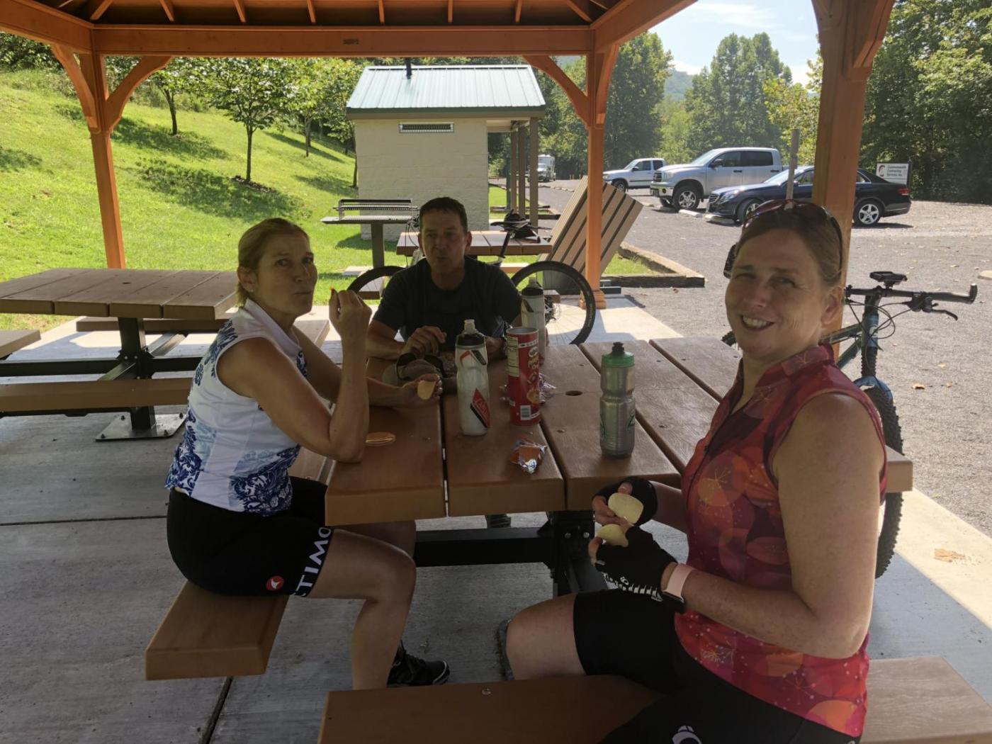 Four of us rode the trail on Labor Day weekend in 2018. Gary Butcher and I were on mountain bikes, While my wife Mary and Barbara Butcher were on hybrids designed for rail trails and greenways. The Jackson River Scenic Trail was perfect for either. Kids bikes would be fine too.