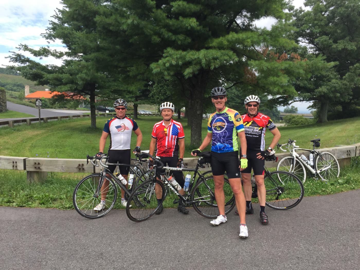 The views more than made up for the effort. This section of Parkway is iconic, and it was filled with cyclists. It wasn’t necessary to stop at the overlooks to take in the vistas, because the Parkway, as it does for much of it’s length, is truly on the spine of the ridgeline with valleys on either side. Luckily the road loses elevation as it goes north, so everyone recovered well from the earlier climb. If you have not ridden this section of the Parkway you need to put it on your must-do list.