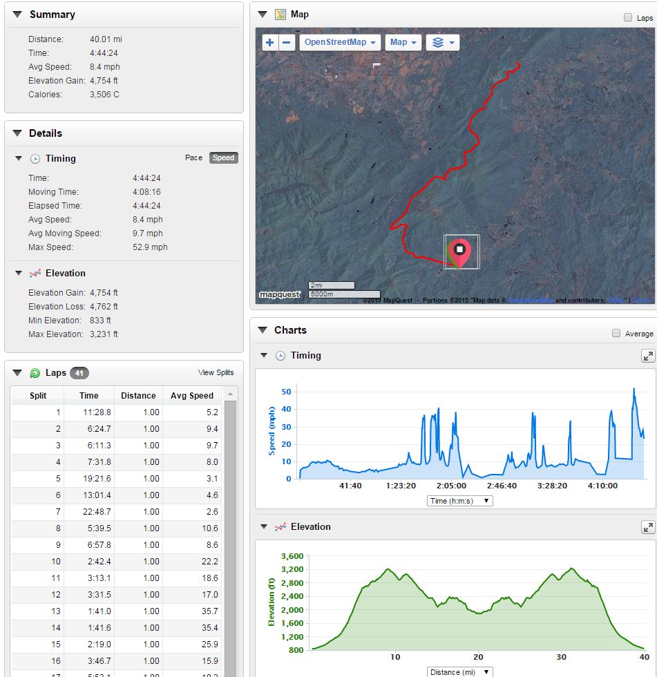 According to my Garmin running watch, we rode a total of 40 miles, including 4,784 feet of climbing. My device doesn’t show grade percentages, but other guys said 18-percent was the max. The initial climb sits on 14-15 percent for quite a while, and that is more than I had ever attempted. It hurt, but I’m glad I did it.
